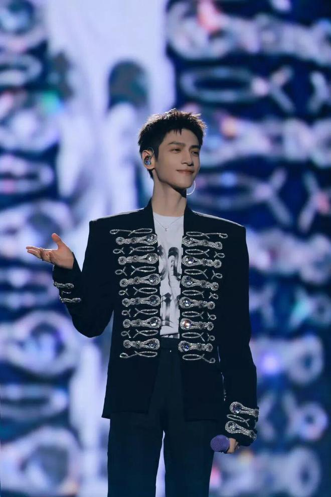 罗云熙在宝鸡银杏音乐节也穿上了同款Balmain西装,内搭黑白字母 T 恤,把军装的仪式感削弱成松弛与酷感并存的年轻气息。