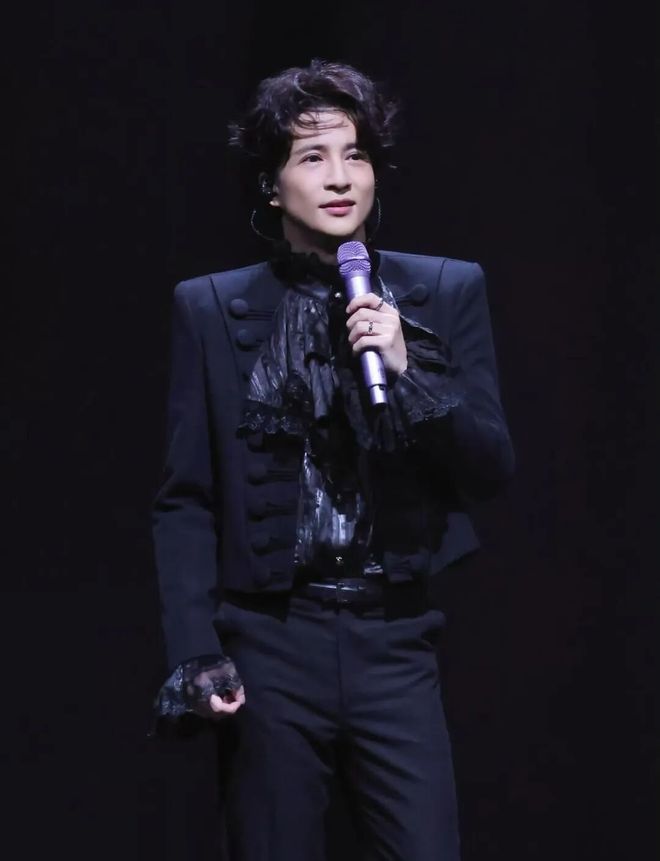 今年在潘玮柏演唱会上,薛之谦作为惊喜嘉宾身穿Balmain黑色拿破仑夹克,内搭 Devil Fashion哥特衬衫。立领与修身结构营造冷冽骨架,黑色荷叶边在灯光下翻涌,硬朗夹克与哥特浪漫在动态间撞击出层叠戏剧感。